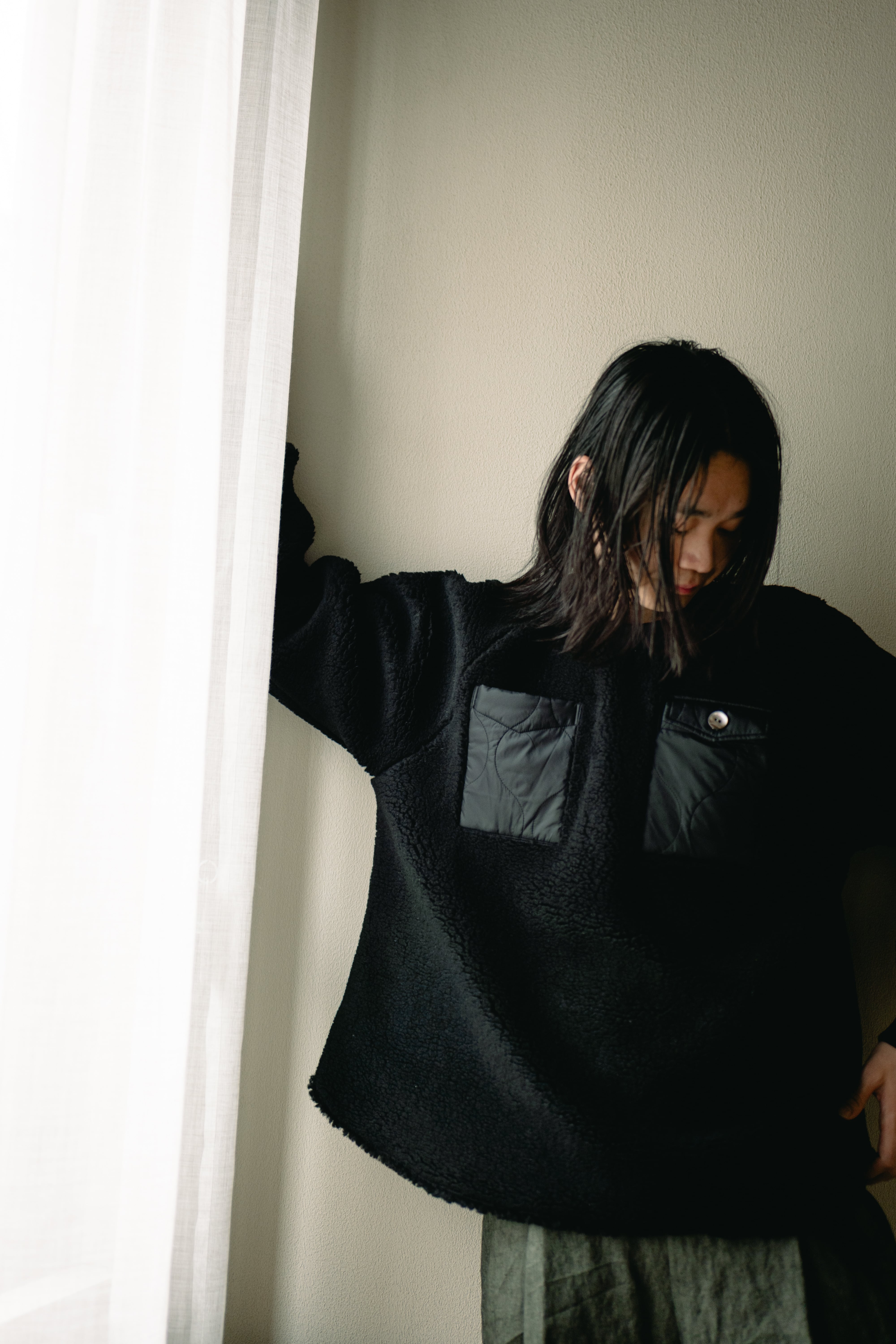 バイカラーのリブ。そこに収納(ストレージ)力を高めたTシャツ型のプルオーバー。
