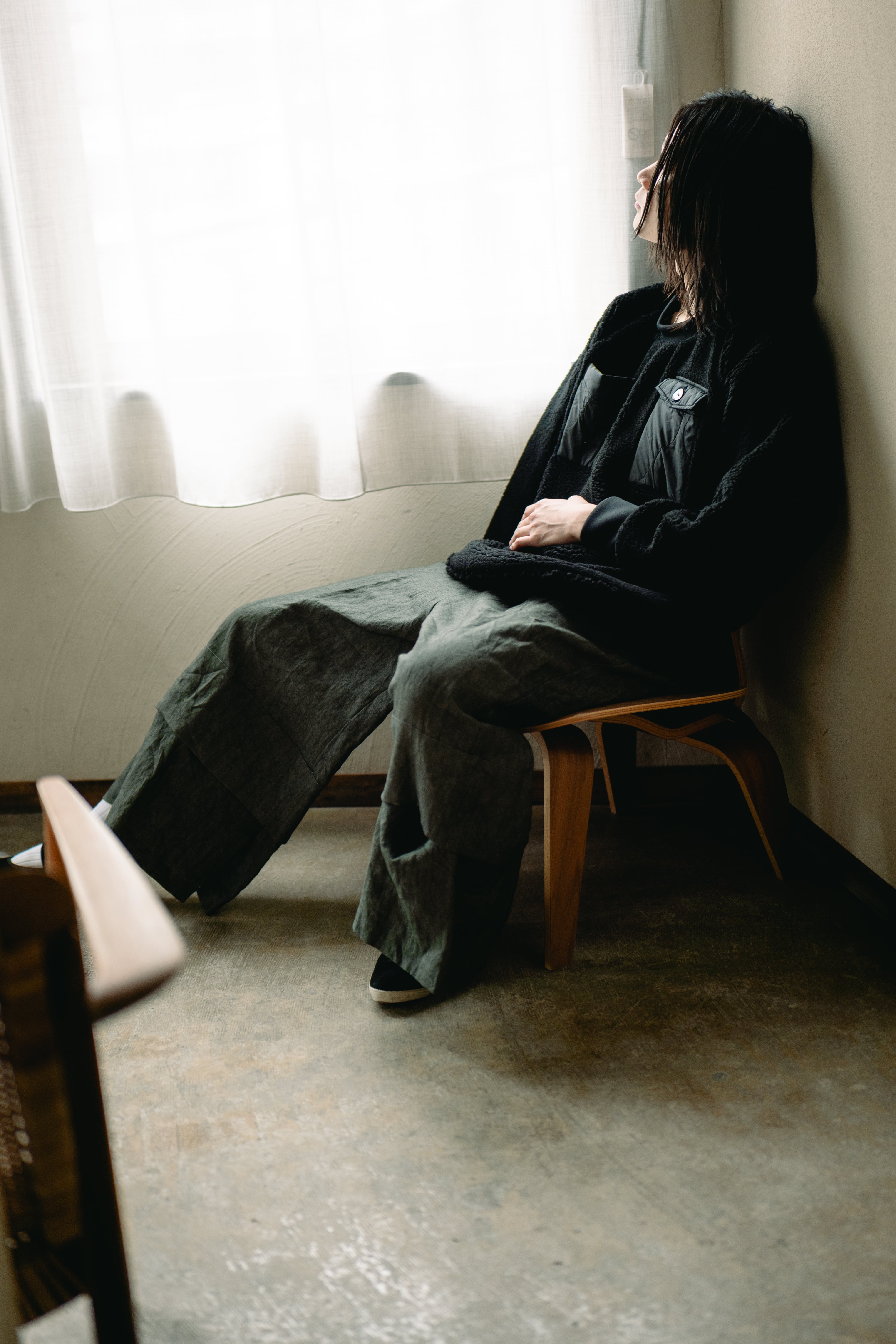 本家はどちらかというとタイトなシルエットなのでインナー味が強いのですが、うちではAラインをつよめてタックインもしやすいよう裾はラウンドタイプに。