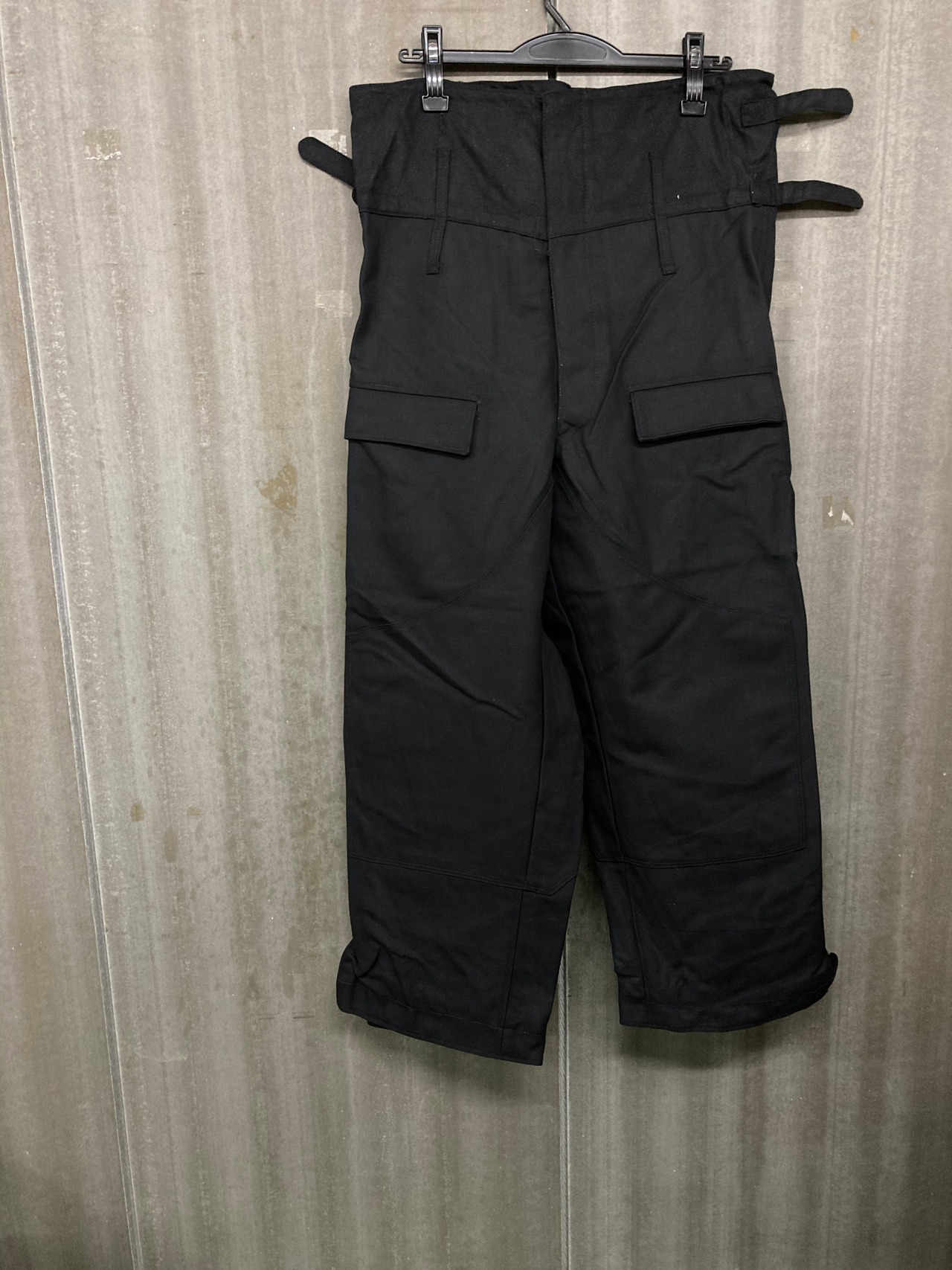 戦車乗りの服で、股上が深いながら切り替え布と土台の生地を跨いでベルトループが二段仕様なので、別布を折り返して着用できます。