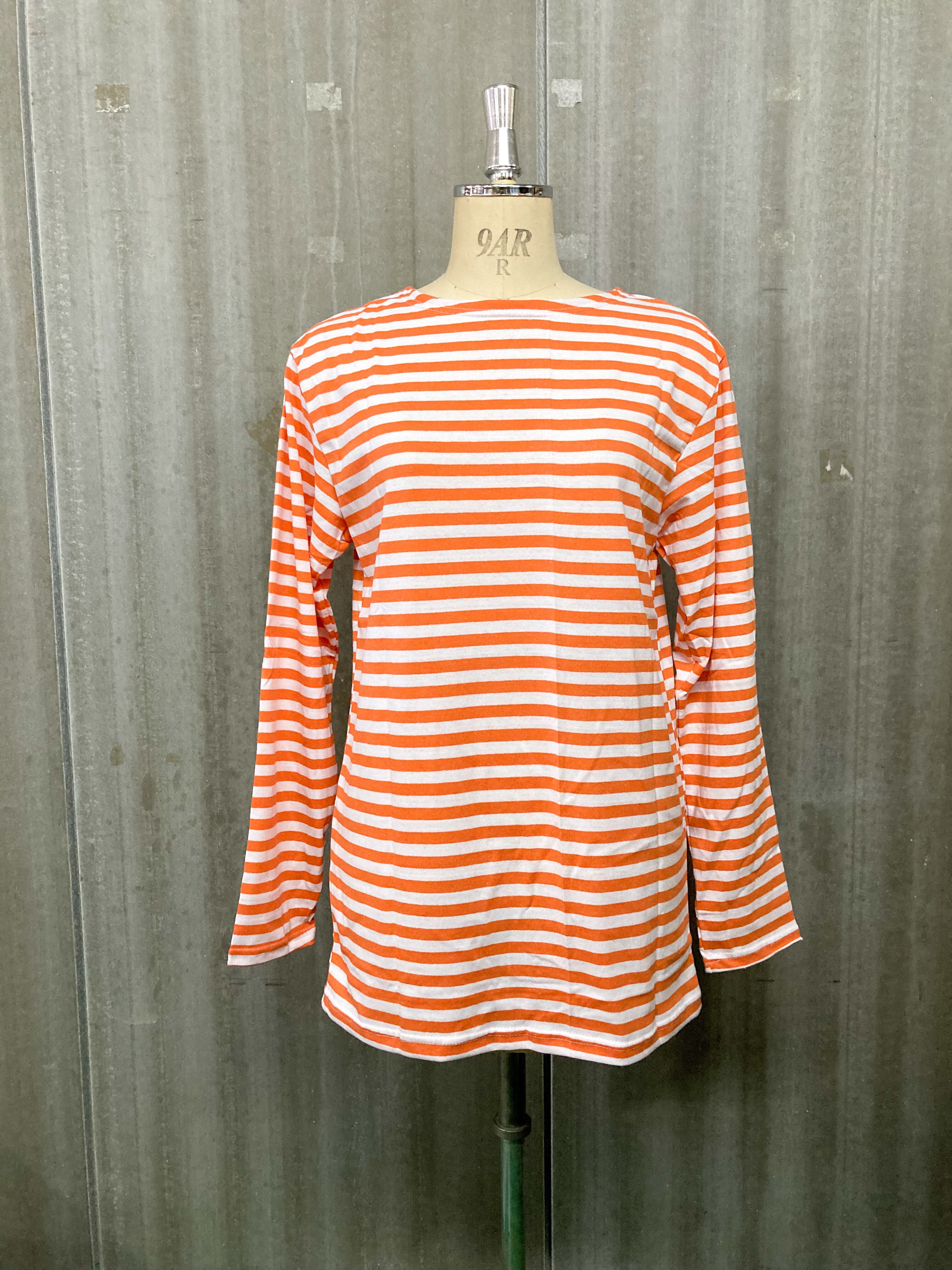 クルーネック、ボートネックとも違う独特の開きの襟が特徴で、 ミリタリーアイテムながらシルエットも細身なので街着として 落とし込みやすく、インナーから一枚着まで幅広く活躍します。