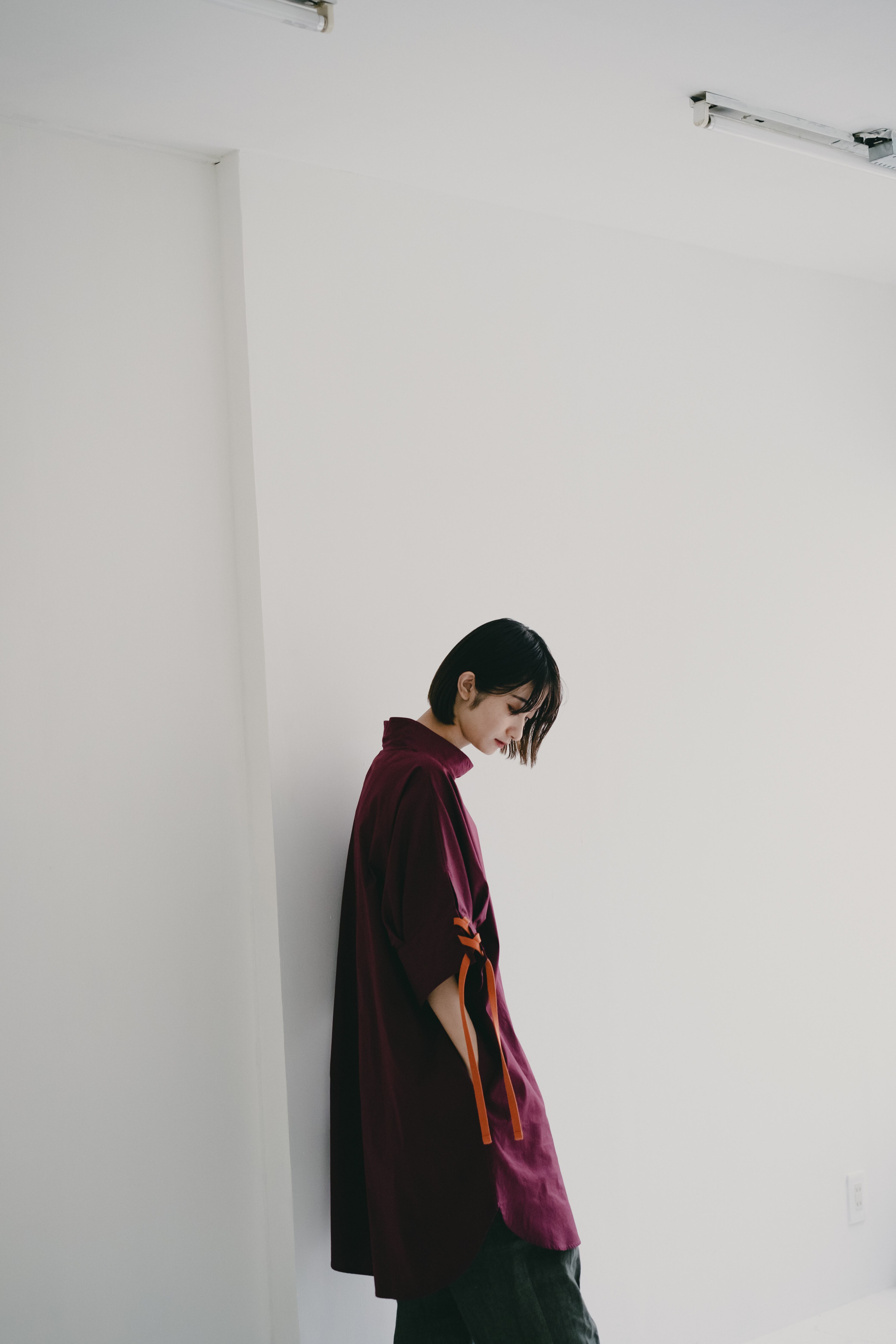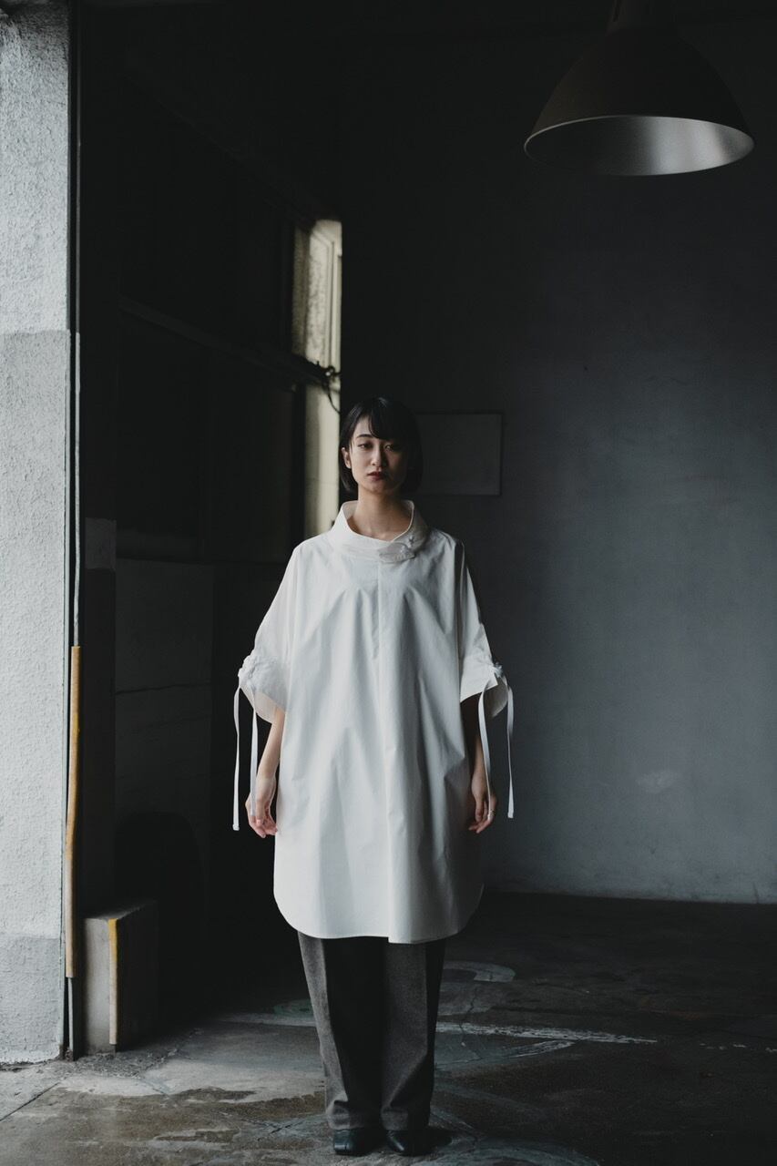見た目はシンプルなのに、しっかりとシャツとして縫われ、細かくデザインが散りばめられた服です。