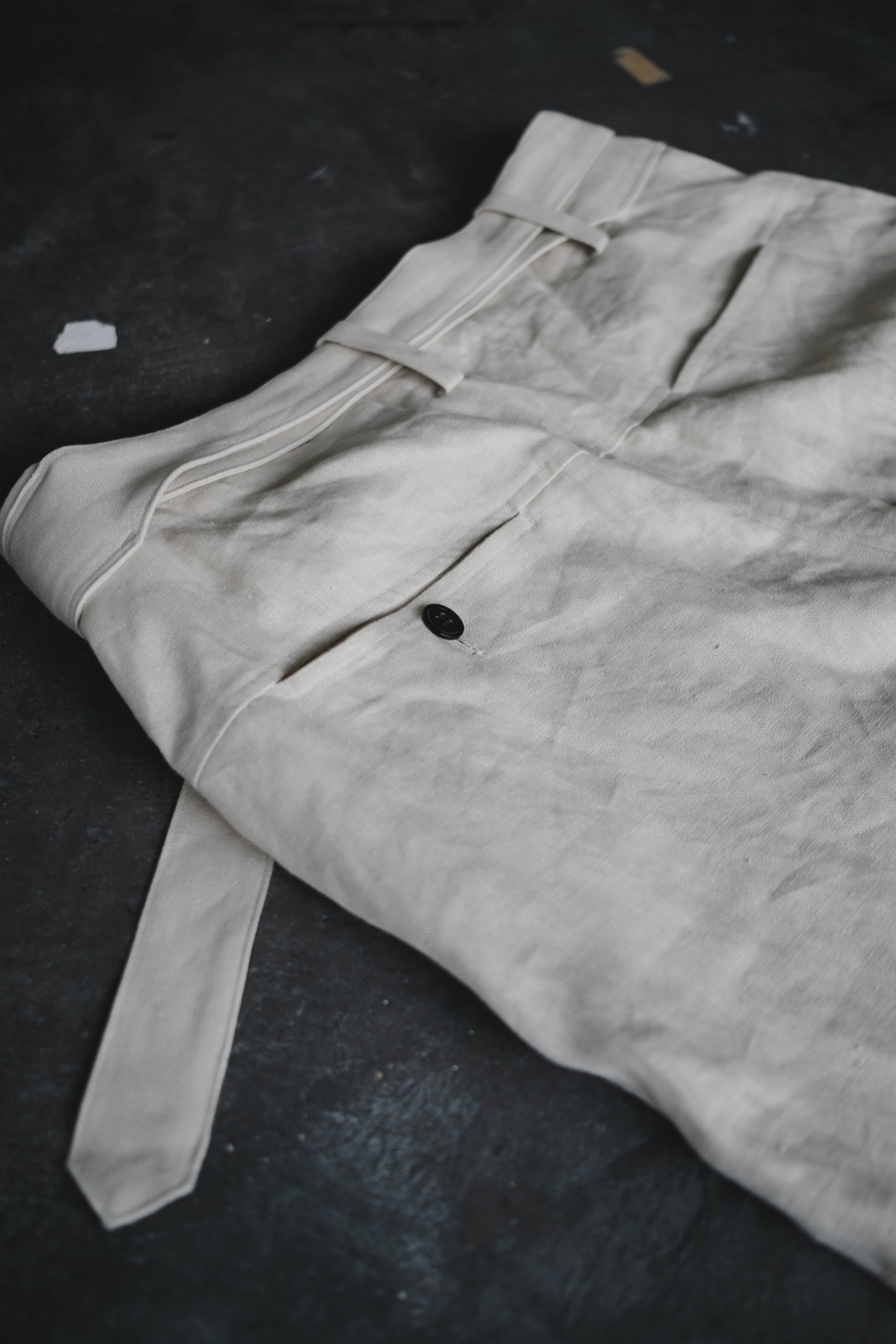 裾をテーパード仕様に・ポケットはスルーではなくし、柔らかい素材を使用。