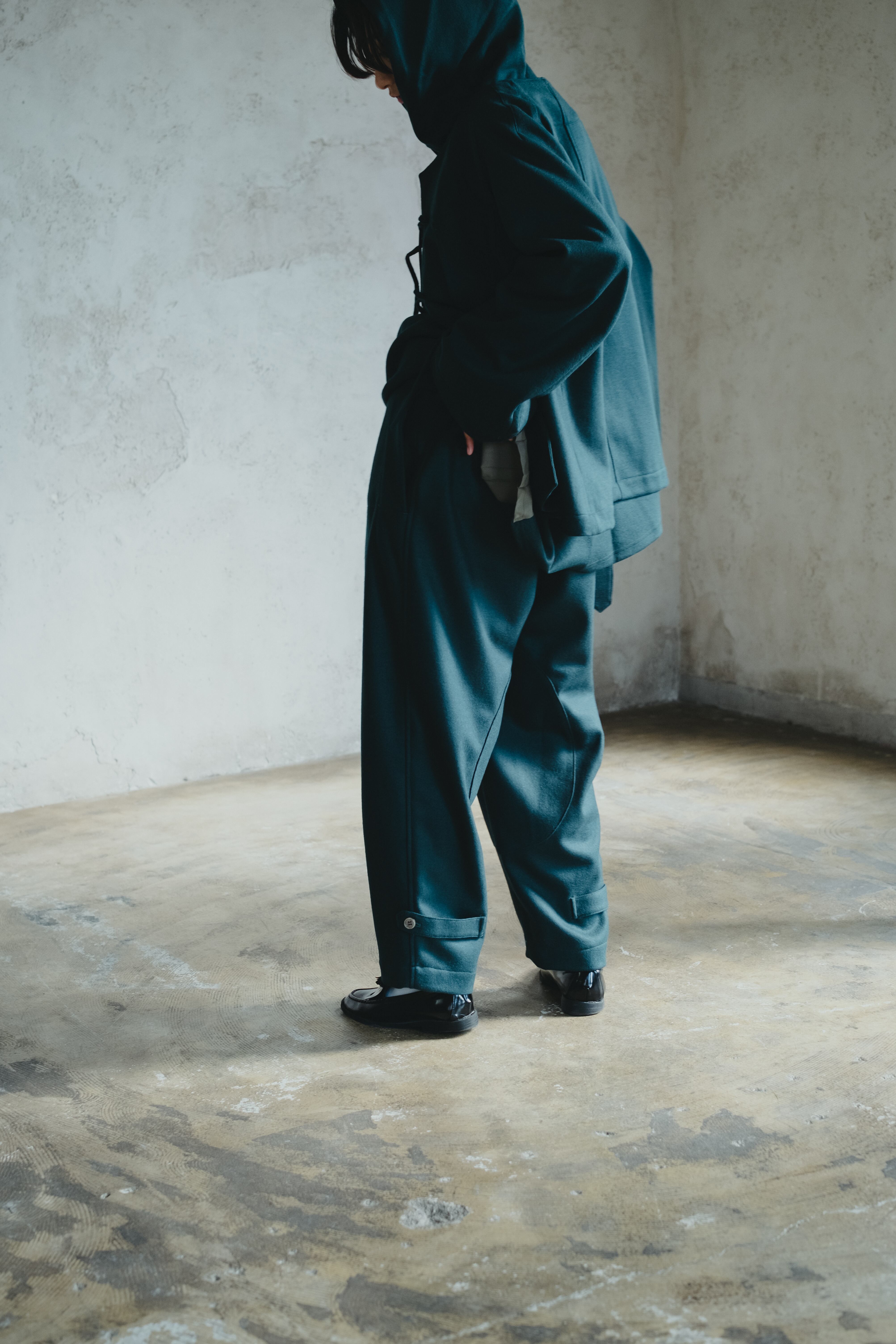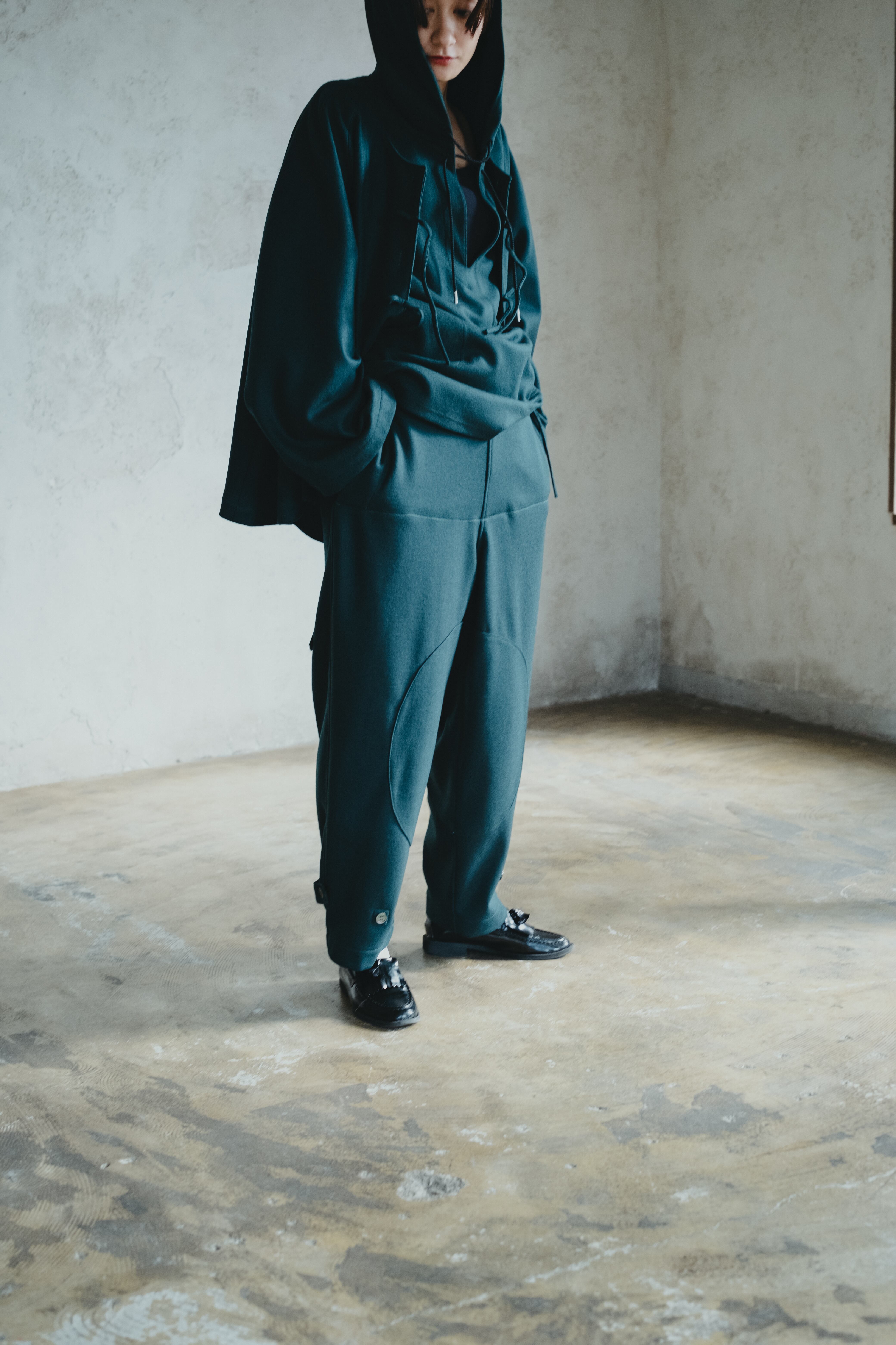裾をテーパード仕様に・ポケットはスルーでは無くし、柔らかい素材を使用。